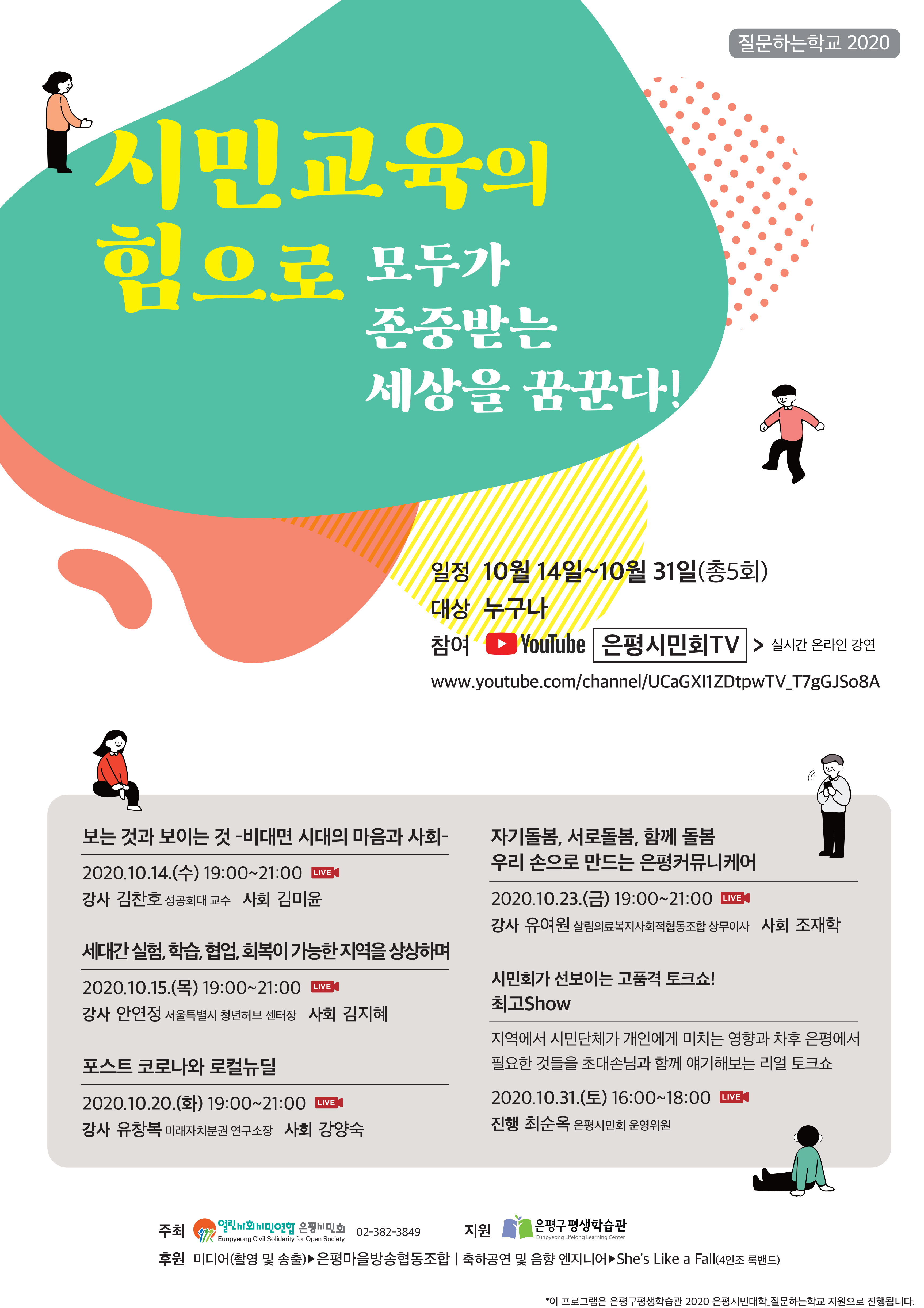 은평시민회가 올해 20주년을 맞아 건강한 시민사회를 위한 시민강좌를 준비하였습니다.
