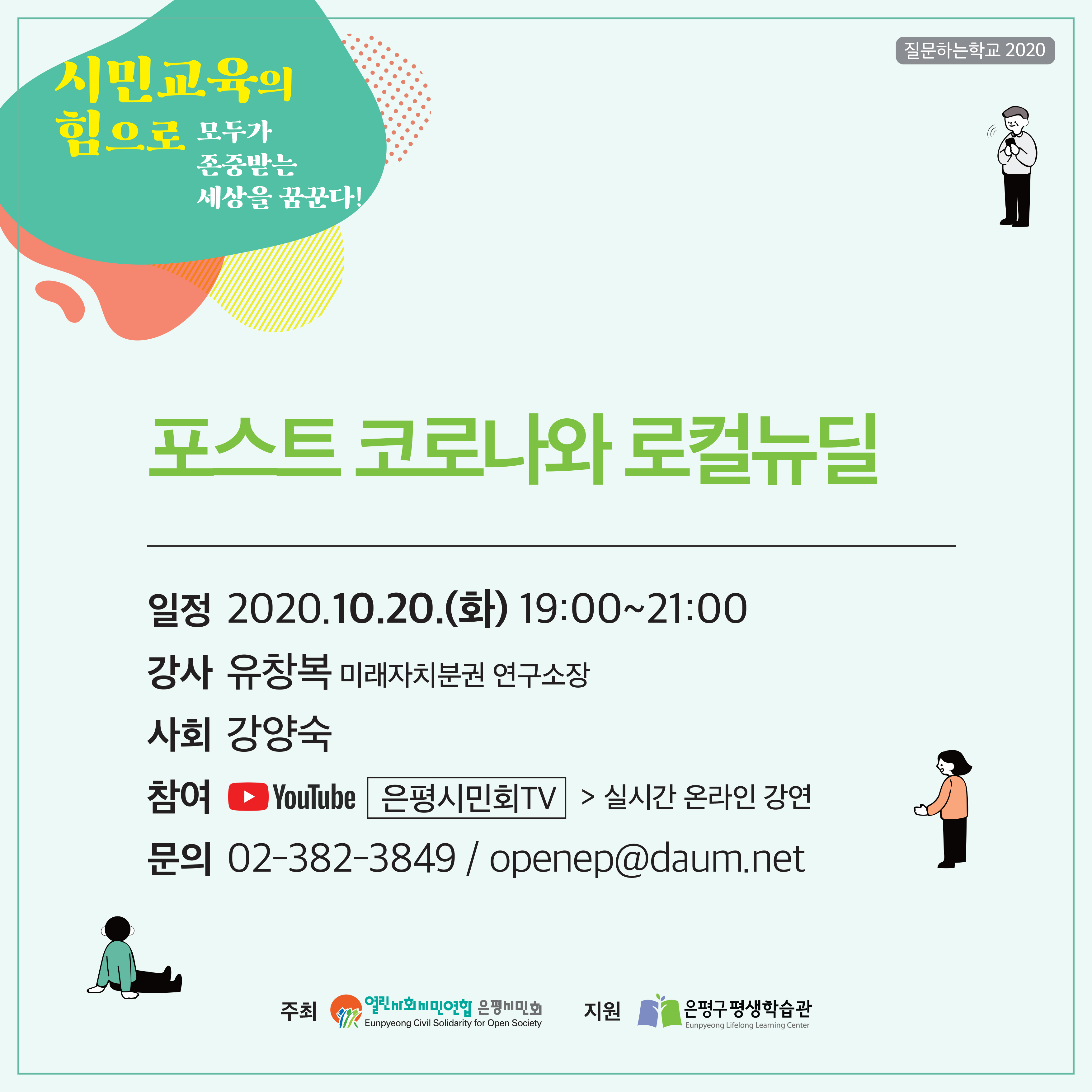 | 시민교육강좌 [3강] 포스트 코로나와 로컬뉴딜 (1) | 2020.10.23 |