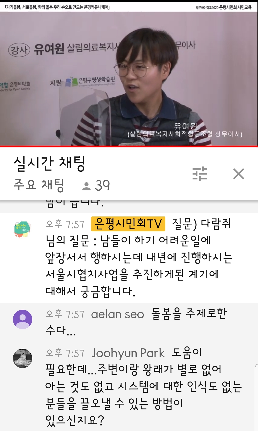 2020년 10월 23일 은평시민회가 20주년을 맞아 기획한 온라인 강좌, 그 네번째 강의가 유투브 실시간 스트리밍으로 방송되었습니다.