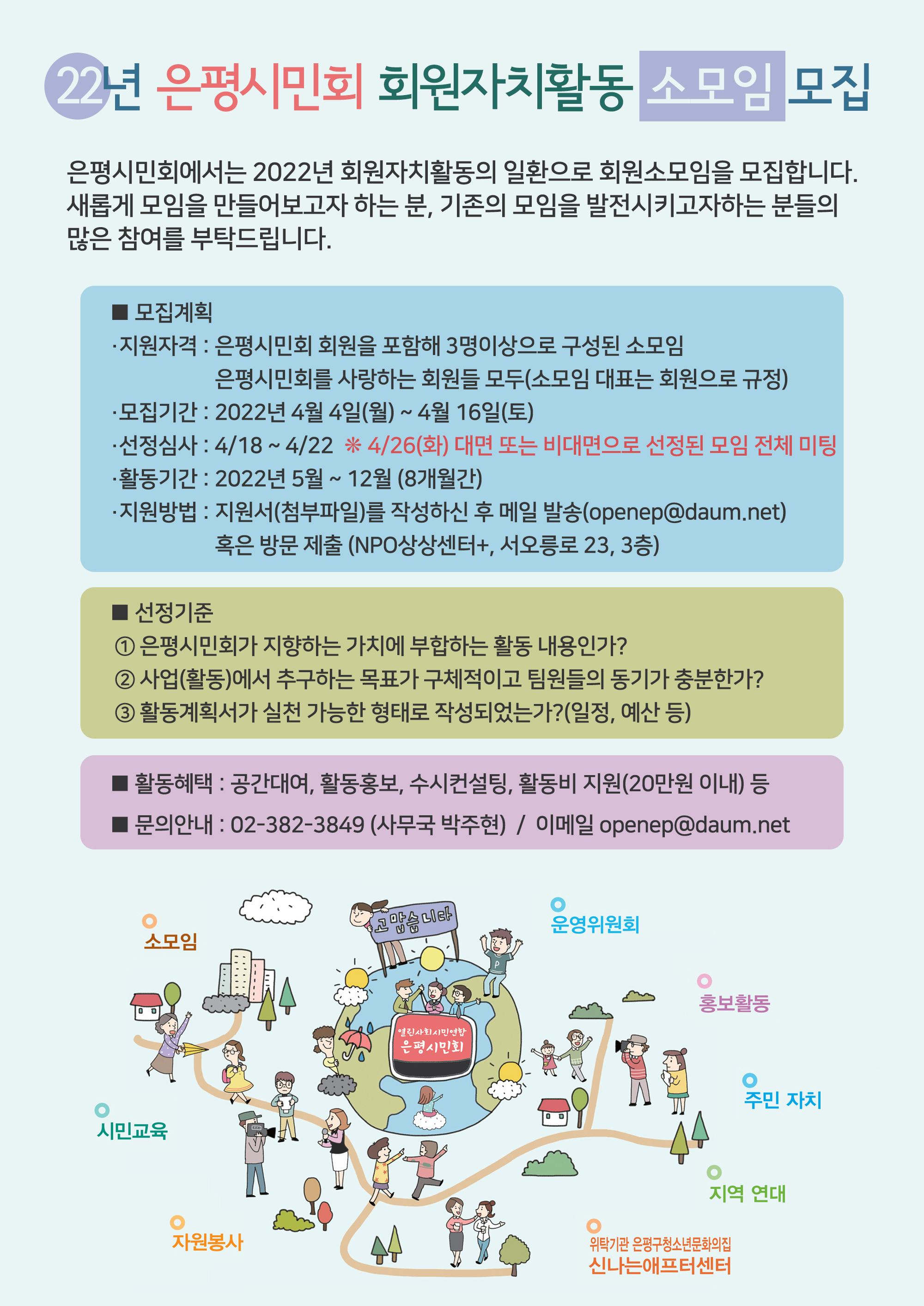 열린사회은평시민회에서는 2022년 함께 할 회원자치 소모임을 모집합니다.