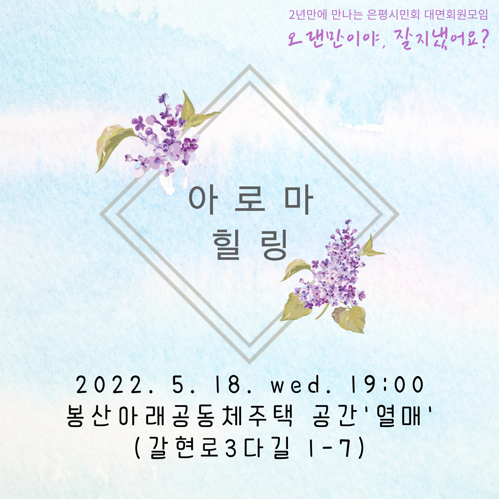 | 5월 회원프로그램 '아로마힐링' (1) | 2022.05.20 |