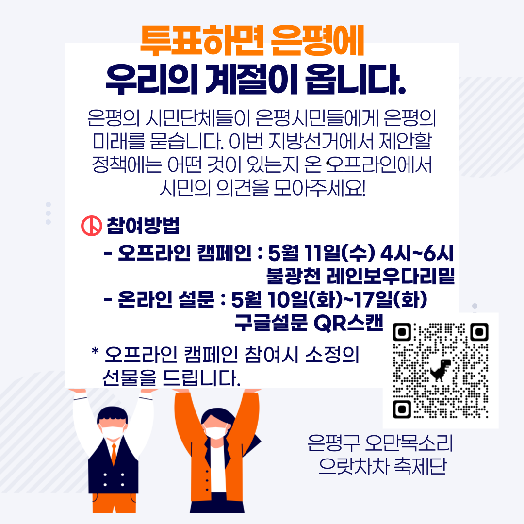 시민의 의견을 묻기 위해 5월 11일(수) 오후 4시~6시 "으랏차차 축제단"(은평시민사회, 단체, 모임)이