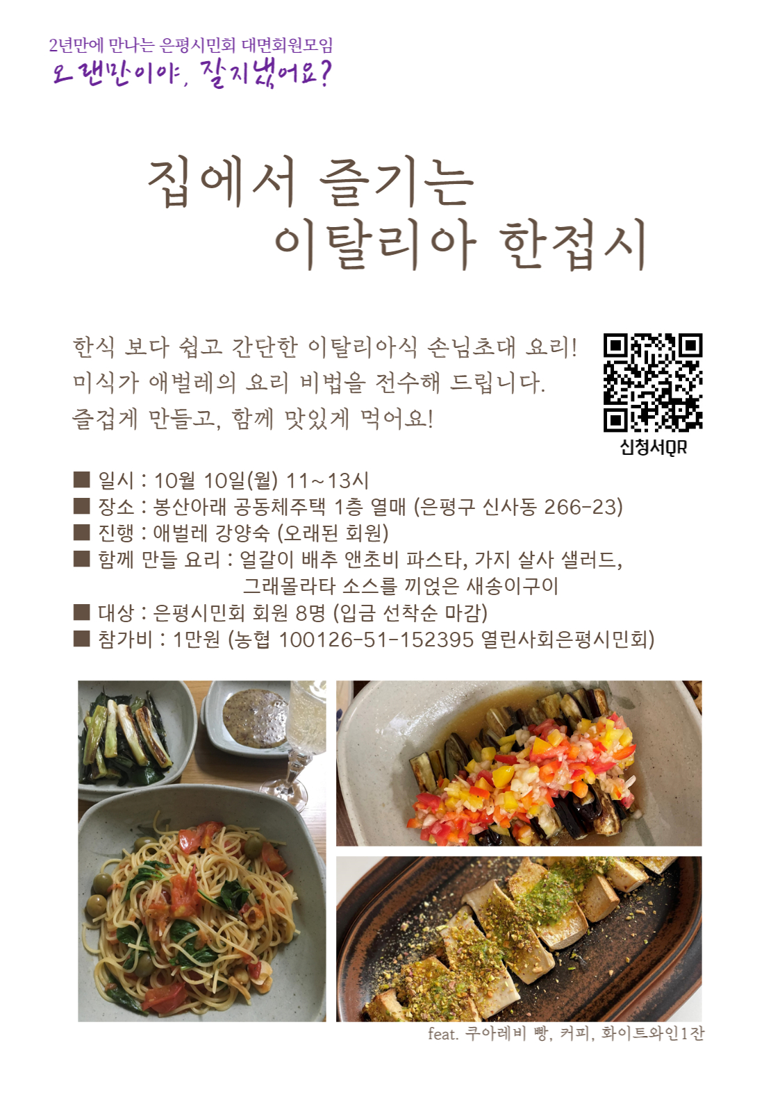 ☐ 참가비 : 10,000원 (은평시민회 계좌_농협_100126-51-152395로 입금)
