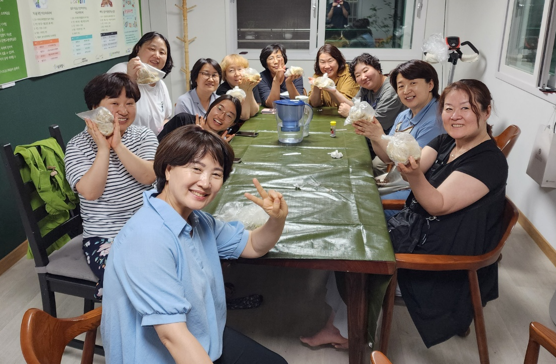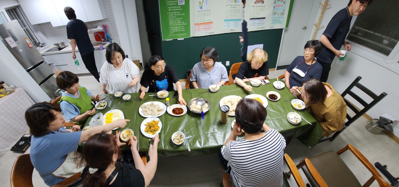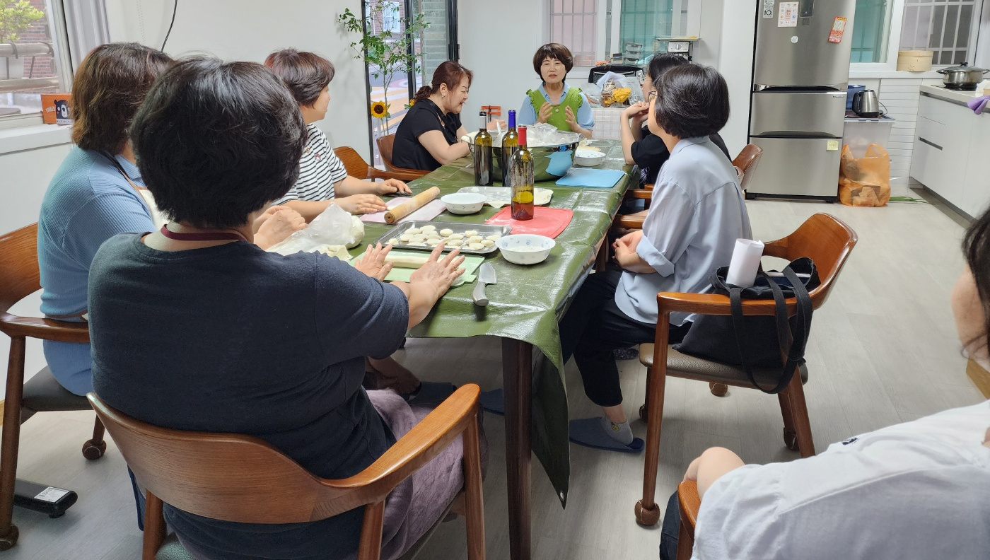최영미 회원이 1일 쉐프가 되어 회원들과 함께 김치만두를