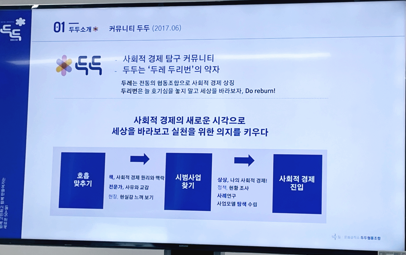 그 첫번째는 이번 탐방과 액션플래닝을 이끌어 준 두두협동조합을 소개받았다.