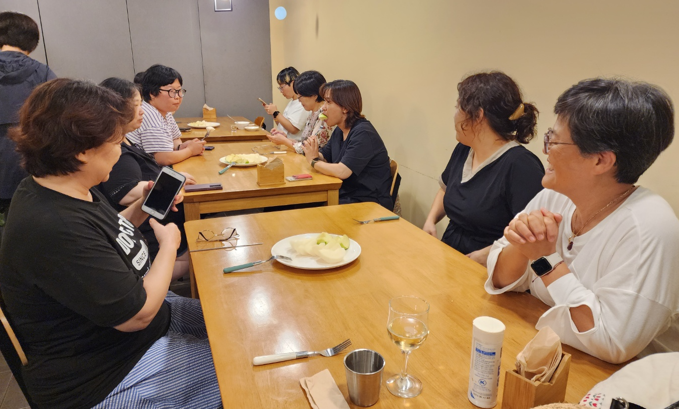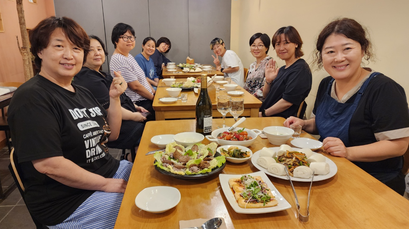 박지현님의 스파클링 와인과 서애란님의 후식과일(사과, 배)로 더욱 풍성한 시간이였으며, 즐거운 식사 후에 서로에 대한 이야기로 시간가는줄 모르고 함께 한, 헤어지기 아쉬운 날이였다.