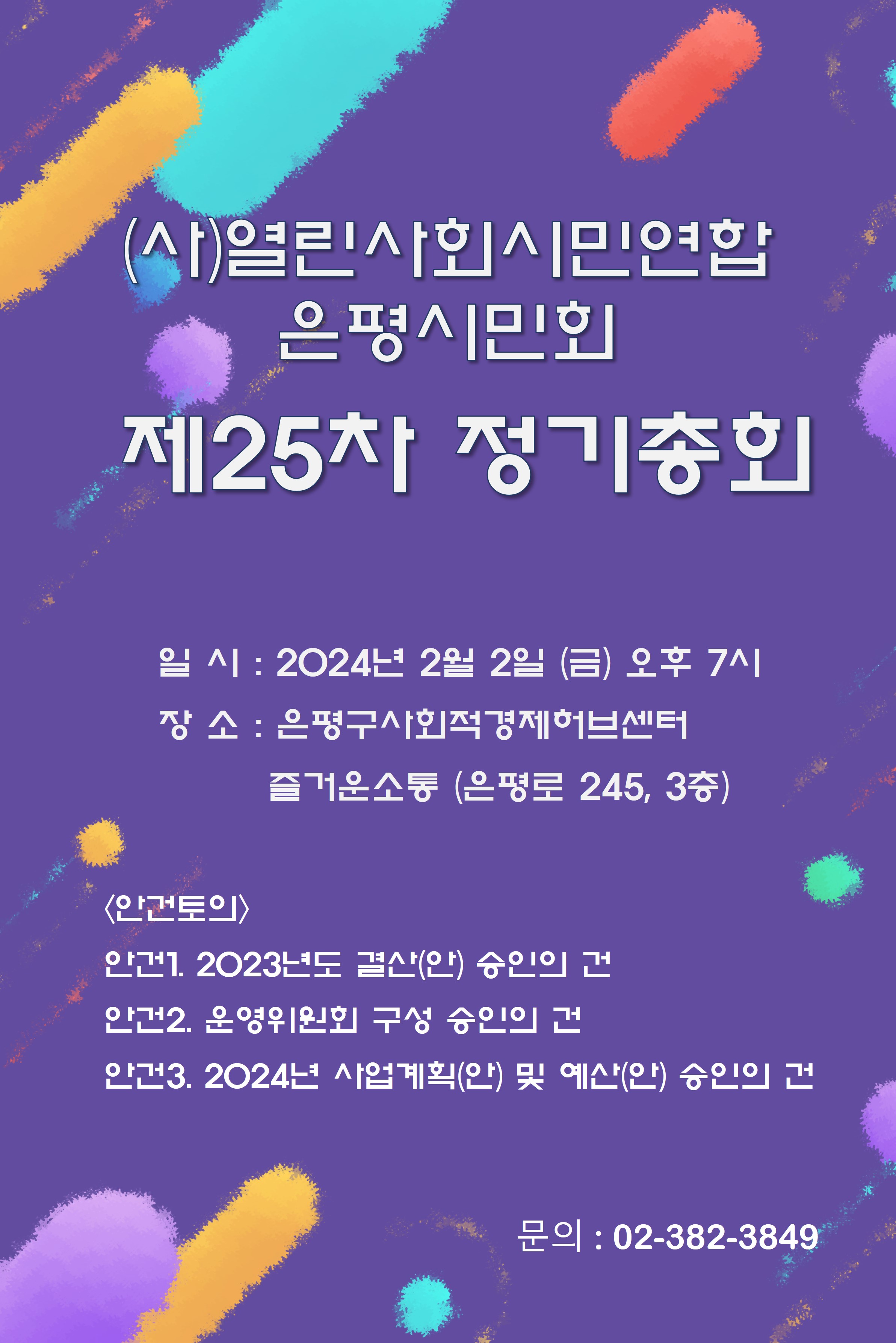 2024년을 시작하면서 (사)열린사회시민연합 은평시민회 제25차 정기총회를 합니다.