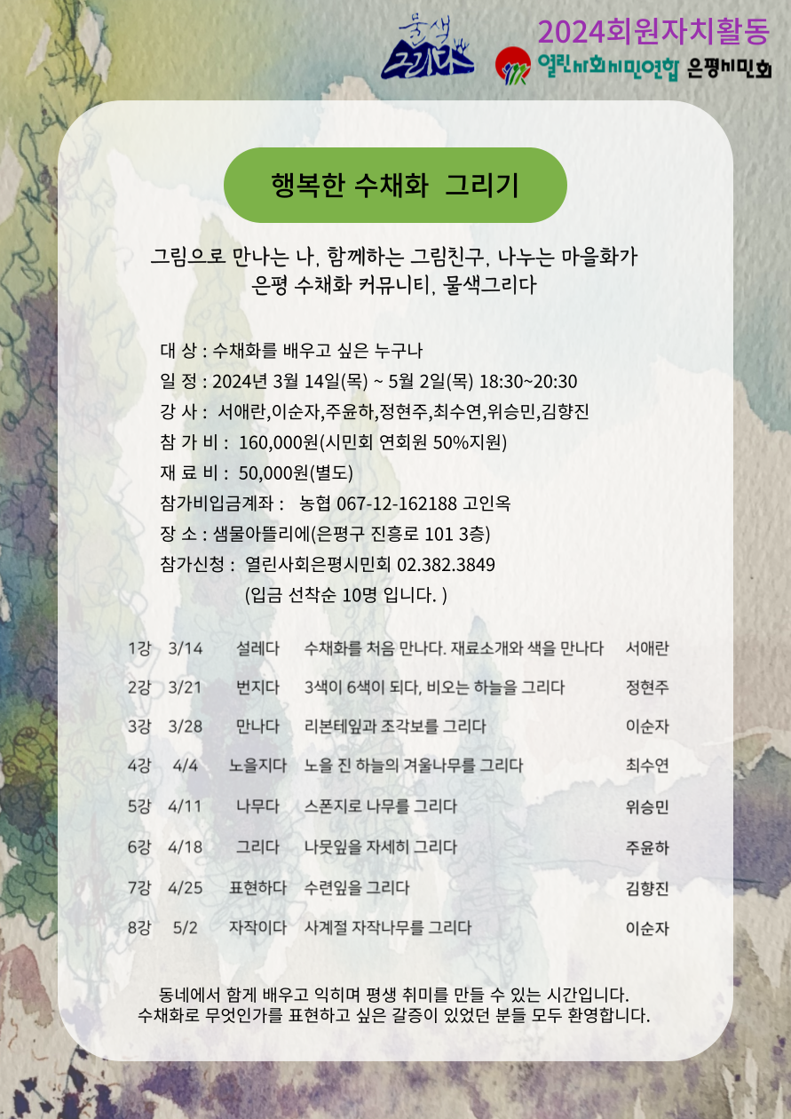 2024년 행복한 수채화 그리기 수강자를 모집합니다.