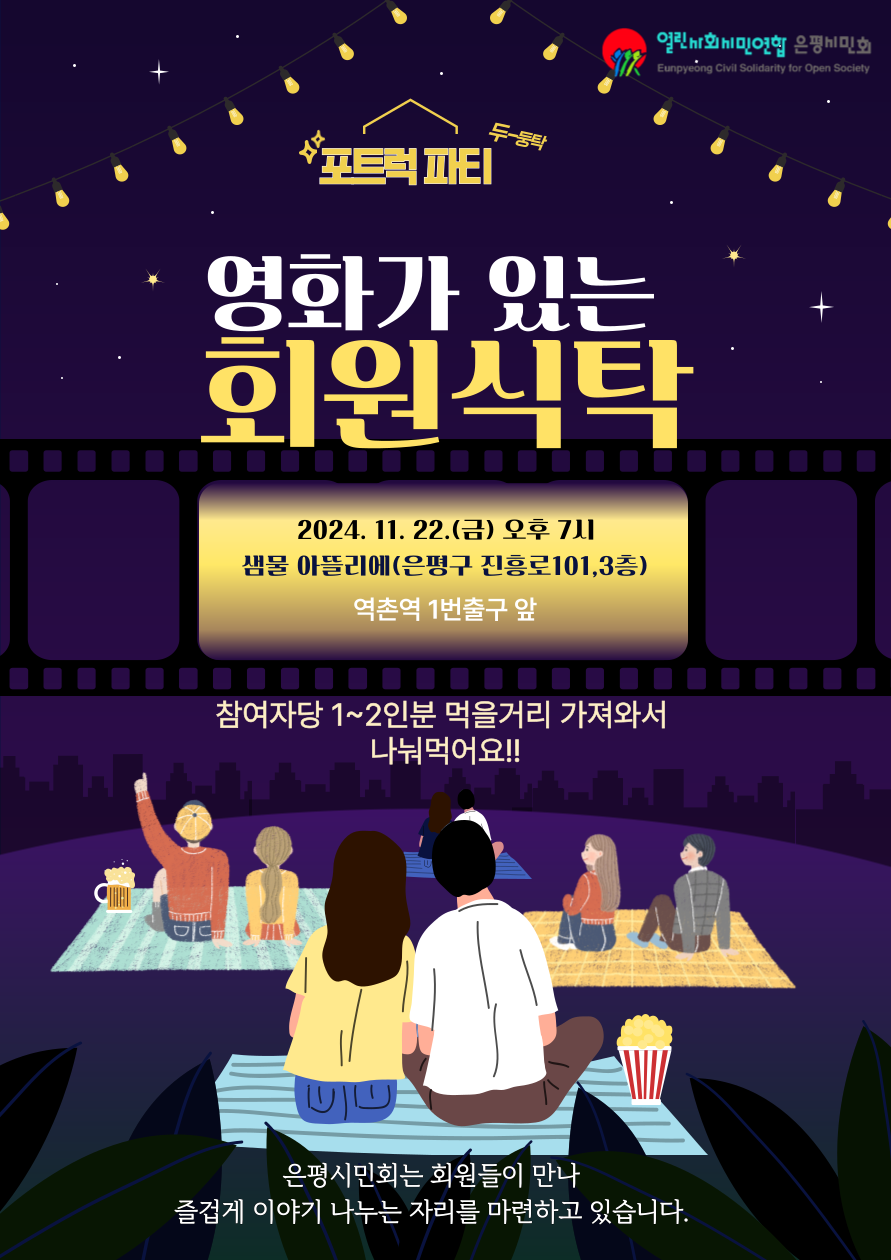 2024년 은평시민회 ‘회원식탁’, 11월은 '영화가 있는 회원식탁'입니다.